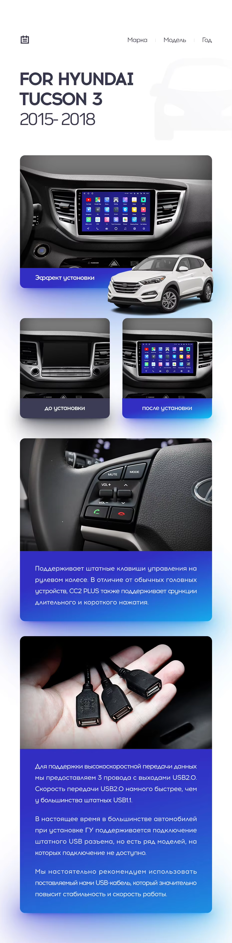 Штатная магнитола Teyes CC2 Plus 4/32 Hyundai Tucson 3 (2015-2018) Тип-A - купить всего за 33 800 руб. в интернет-магазине в Петрозаводске Teyes.com.ru. ✓ Самый лучший выбор мультимедиа ✓ Лучшая замена штатному ГУ ✓ Тел. +7 (800) 775-31-74