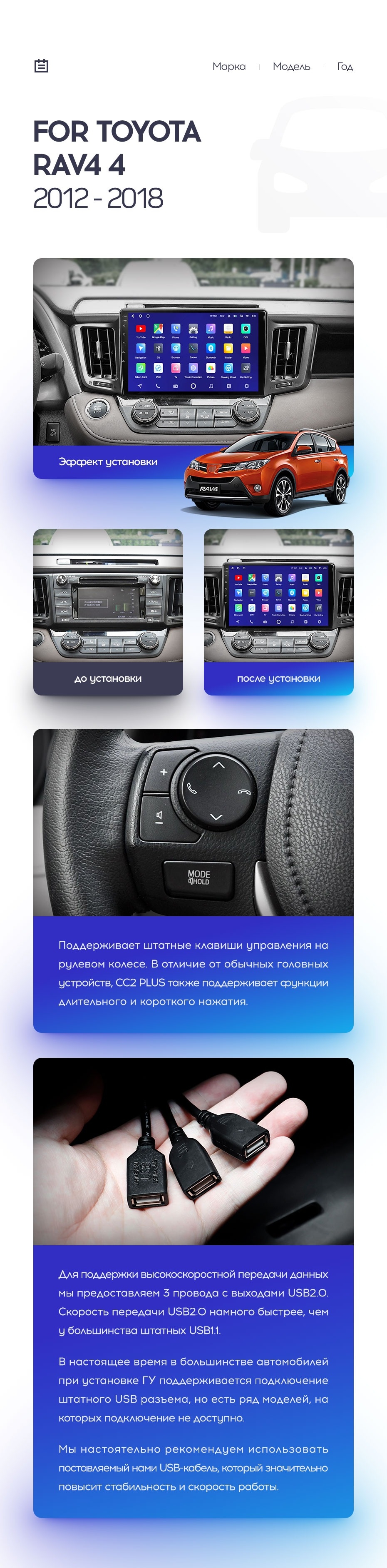 Штатная магнитола Teyes CC2 Plus 4/64 Toyota RAV4 (2012-2018) - купить всего за 35 900 руб. в интернет-магазине в Петрозаводске Teyes.com.ru. ✓ Самый лучший выбор мультимедиа ✓ Лучшая замена штатному ГУ ✓ Тел. +7 (800) 775-31-74