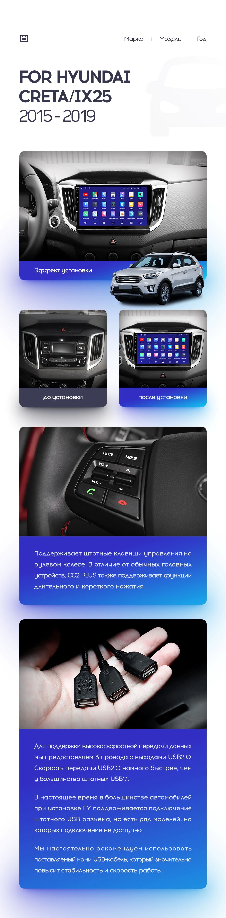 Штатная магнитола Teyes CC2L Plus 1/16 Hyundai Creta (2015-2020) - купить всего за 15 500 руб. в интернет-магазине в Петрозаводске Teyes.com.ru. ✓ Самый лучший выбор мультимедиа ✓ Лучшая замена штатному ГУ ✓ Тел. +7 (800) 775-31-74