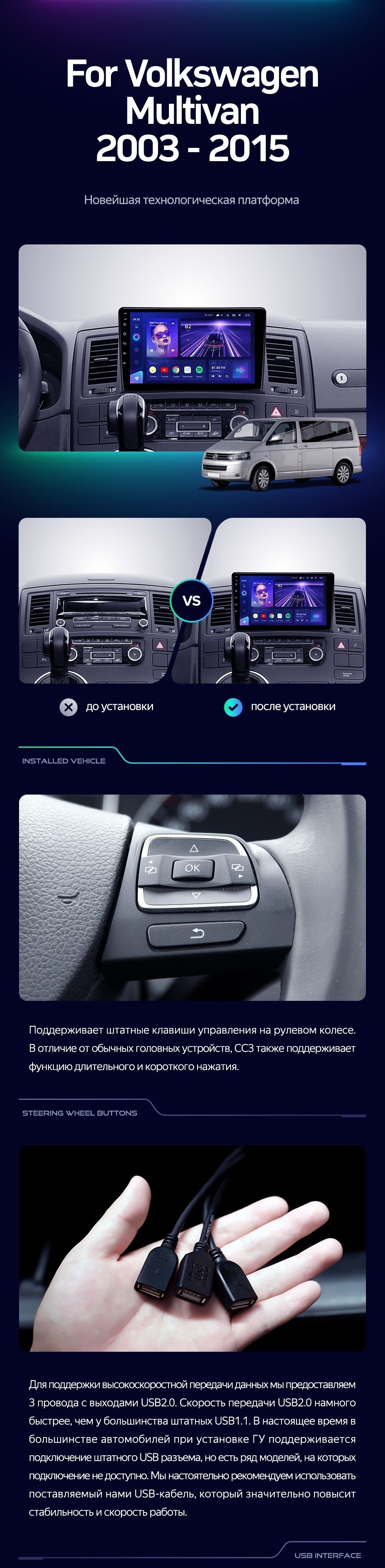 Штатная магнитола Teyes CC3 2K 4/32 Volkswagen Multivan T5 (2003-2015) - купить всего за 39 990 руб. в интернет-магазине в Петрозаводске Teyes.com.ru. ✓ Самый лучший выбор мультимедиа ✓ Лучшая замена штатному ГУ ✓ Тел. +7 (800) 775-31-74