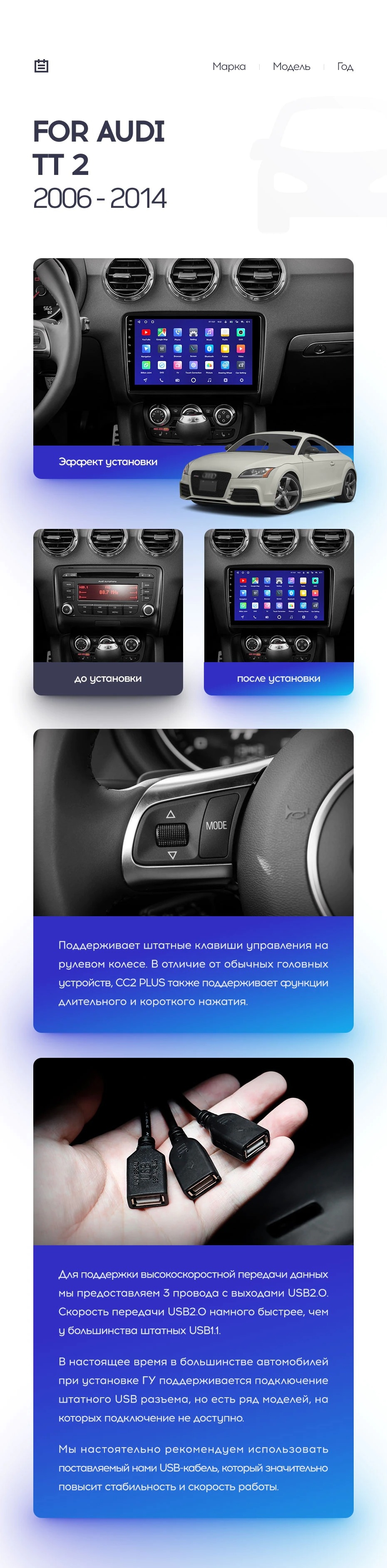 Штатная магнитола Teyes CC3 2K 4/32 Audi TT 2 (2006-2014) (13") - купить всего за 42 500 руб. в интернет-магазине в Петрозаводске Teyes.com.ru. ✓ Самый лучший выбор мультимедиа ✓ Лучшая замена штатному ГУ ✓ Тел. +7 (800) 775-31-74