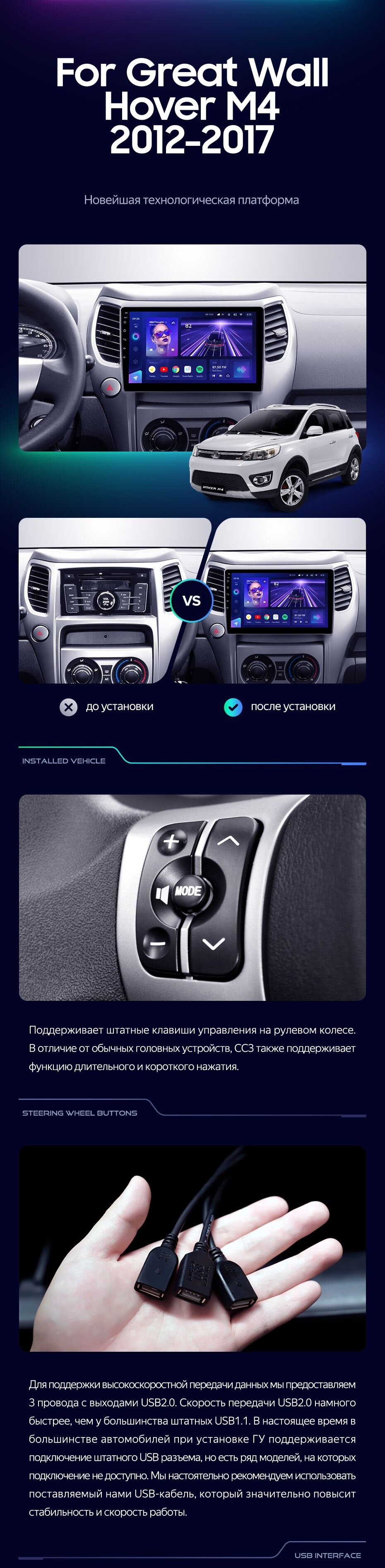 Штатная магнитола Teyes CC3 2K 4/32 Great Wall Hover M4 (2012-2017) (13") - купить всего за 41 500 руб. в интернет-магазине в Петрозаводске Teyes.com.ru. ✓ Самый лучший выбор мультимедиа ✓ Лучшая замена штатному ГУ ✓ Тел. +7 (800) 775-31-74