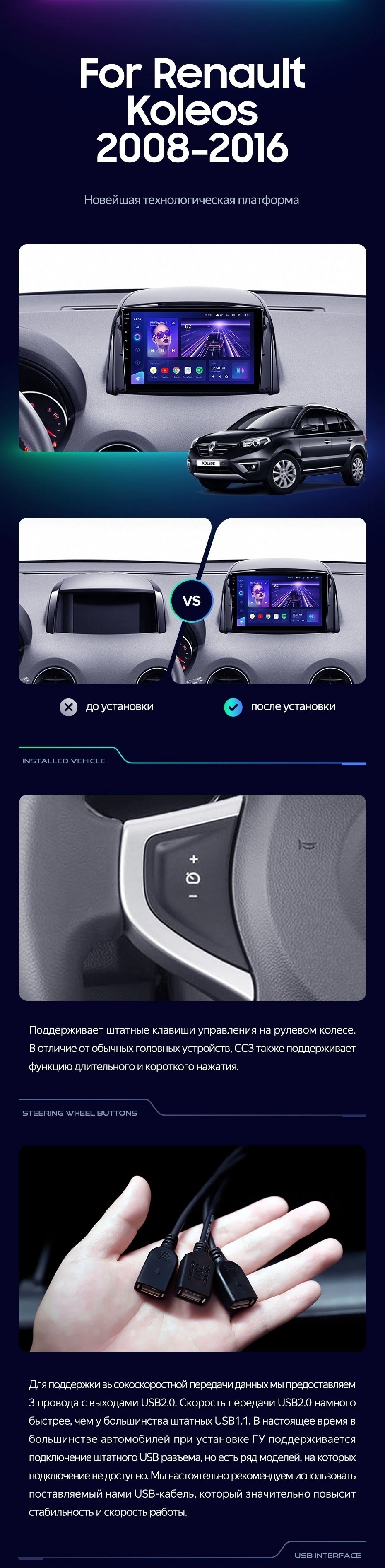Штатная магнитола Teyes CC3 2K 4/64 Renault Koleos (2008-2016) Тип-A - купить всего за 47 800 руб. в интернет-магазине в Петрозаводске Teyes.com.ru. ✓ Самый лучший выбор мультимедиа ✓ Лучшая замена штатному ГУ ✓ Тел. +7 (800) 775-31-74