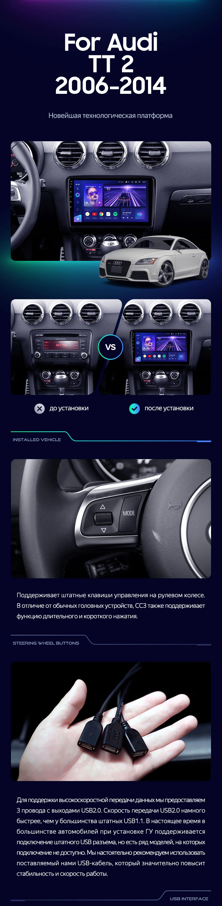 Штатная магнитола Teyes CC3 2K 6/128 Audi TT 2 (2006-2014) (13") - купить всего за 48 460 руб. в интернет-магазине в Петрозаводске Teyes.com.ru. ✓ Самый лучший выбор мультимедиа ✓ Лучшая замена штатному ГУ ✓ Тел. +7 (800) 775-31-74
