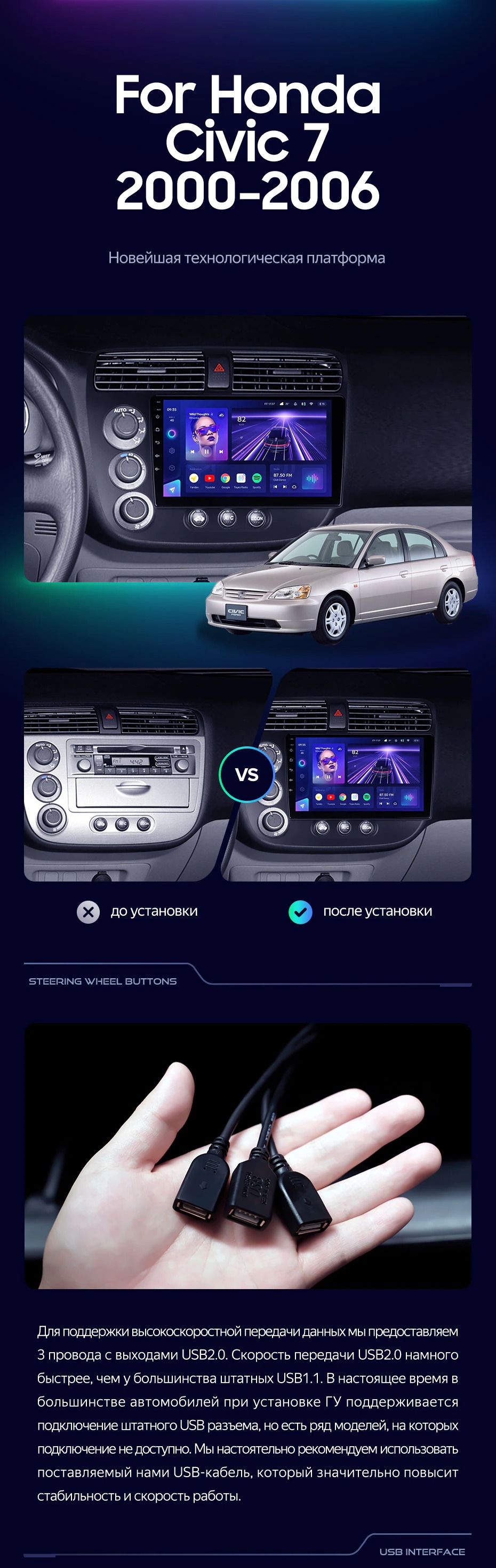 Штатная магнитола Teyes CC3 2K 6/128 Honda Civic 7 (2000-2006) F1 (13") - купить всего за 47 260 руб. в интернет-магазине в Петрозаводске Teyes.com.ru. ✓ Самый лучший выбор мультимедиа ✓ Лучшая замена штатному ГУ ✓ Тел. +7 (800) 775-31-74