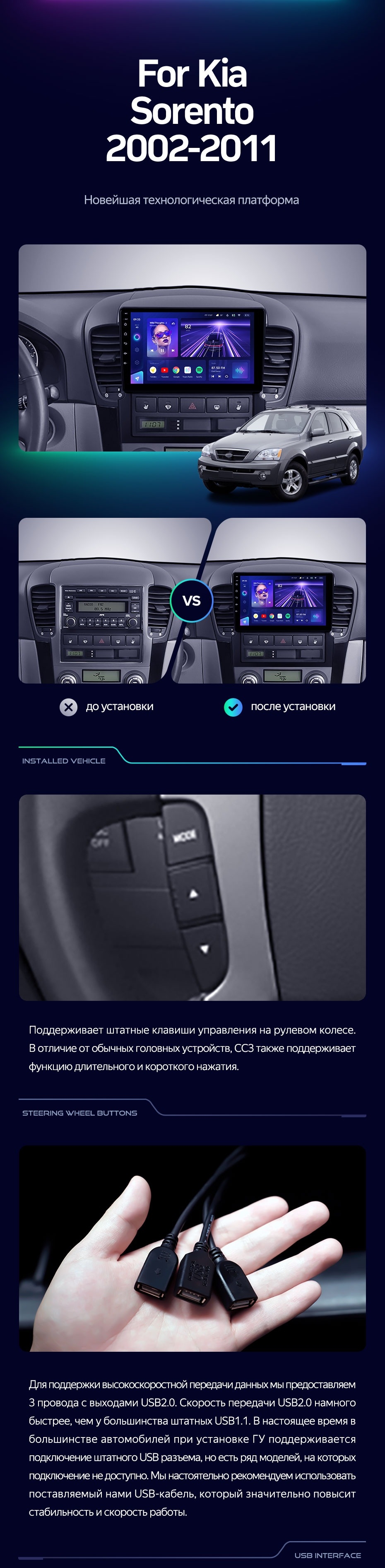 Штатная магнитола Teyes CC3 2K 6/128 Kia Sorento BL (2002-2011) (13") - купить всего за 47 600 руб. в интернет-магазине в Петрозаводске Teyes.com.ru. ✓ Самый лучший выбор мультимедиа ✓ Лучшая замена штатному ГУ ✓ Тел. +7 (800) 775-31-74