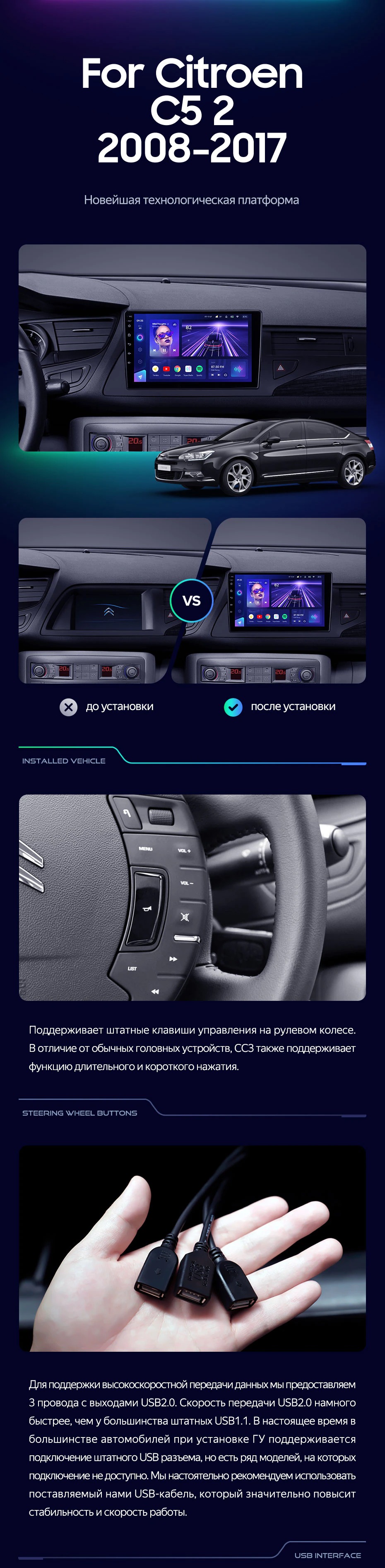 Штатная магнитола Teyes CC3 4/32 Citroen C5 2 (2008-2017) F1 - купить всего за 33 230 руб. в интернет-магазине в Петрозаводске Teyes.com.ru. ✓ Самый лучший выбор мультимедиа ✓ Лучшая замена штатному ГУ ✓ Тел. +7 (800) 775-31-74