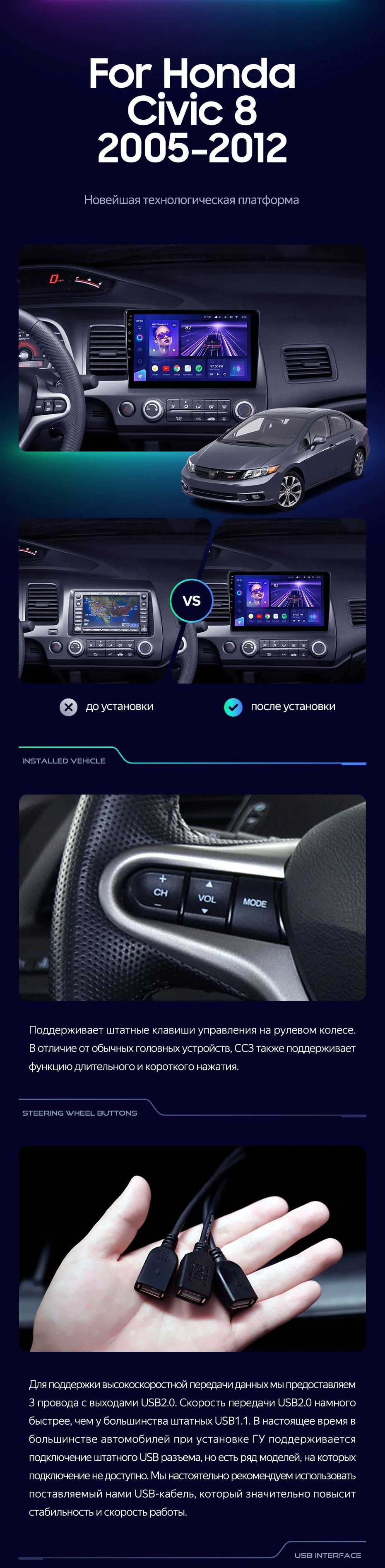 Штатная магнитола Teyes CC3 4/32 Honda Civic Hatchback (2006-2012) - купить всего за 35 970 руб. в интернет-магазине в Петрозаводске Teyes.com.ru. ✓ Самый лучший выбор мультимедиа ✓ Лучшая замена штатному ГУ ✓ Тел. +7 (800) 775-31-74