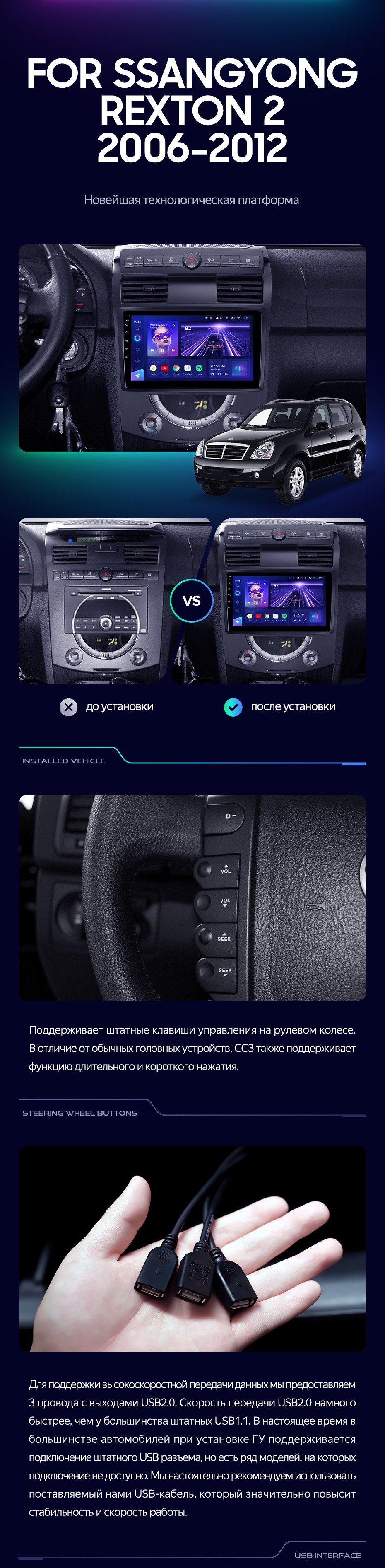 Штатная магнитола Teyes CC3 4/32 SsangYong Rexton Y250 2 (2006-2012) - купить всего за 34 400 руб. в интернет-магазине в Петрозаводске Teyes.com.ru. ✓ Самый лучший выбор мультимедиа ✓ Лучшая замена штатному ГУ ✓ Тел. +7 (800) 775-31-74