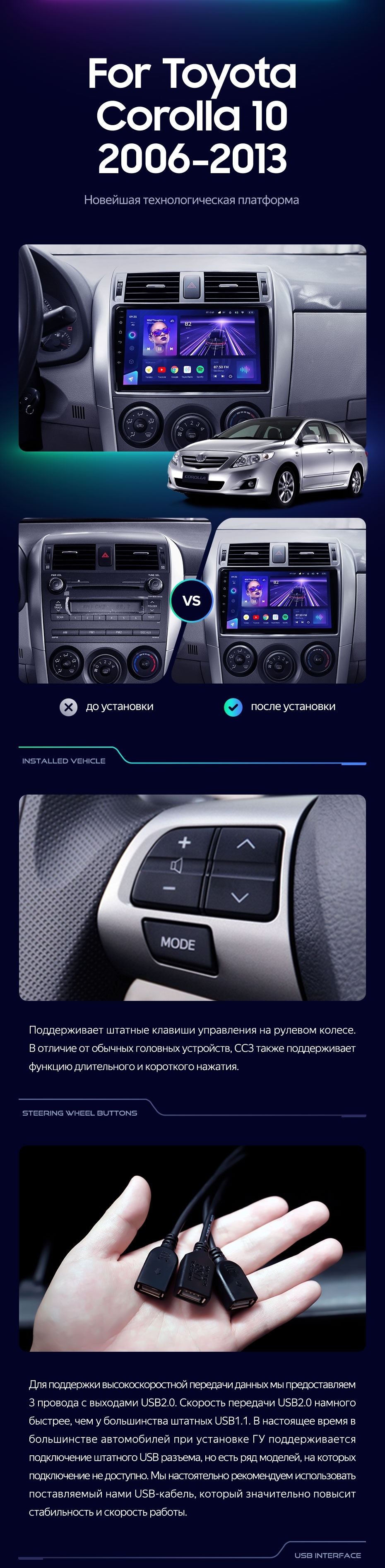 Штатная магнитола Teyes CC3 4/32 Toyota Corolla 10 E140 E150 (2006-2013) Тип-B - купить всего за 31 820 руб. в интернет-магазине в Петрозаводске Teyes.com.ru. ✓ Самый лучший выбор мультимедиа ✓ Лучшая замена штатному ГУ ✓ Тел. +7 (800) 775-31-74
