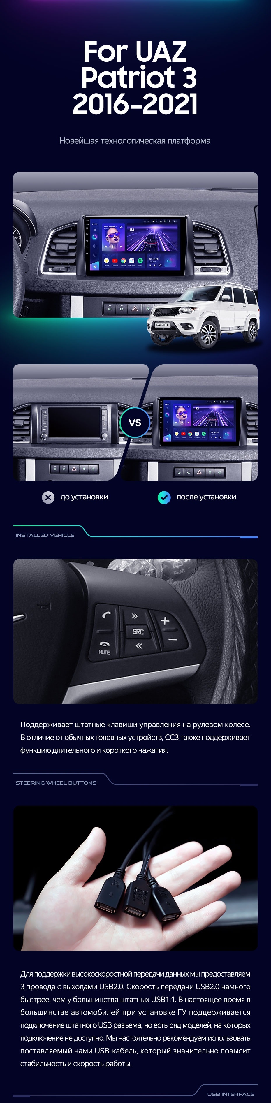 Штатная магнитола Teyes CC3 4/32 UAZ Patriot 3 (2016-2021) F1 - купить всего за 32 270 руб. в интернет-магазине в Петрозаводске Teyes.com.ru. ✓ Самый лучший выбор мультимедиа ✓ Лучшая замена штатному ГУ ✓ Тел. +7 (800) 775-31-74