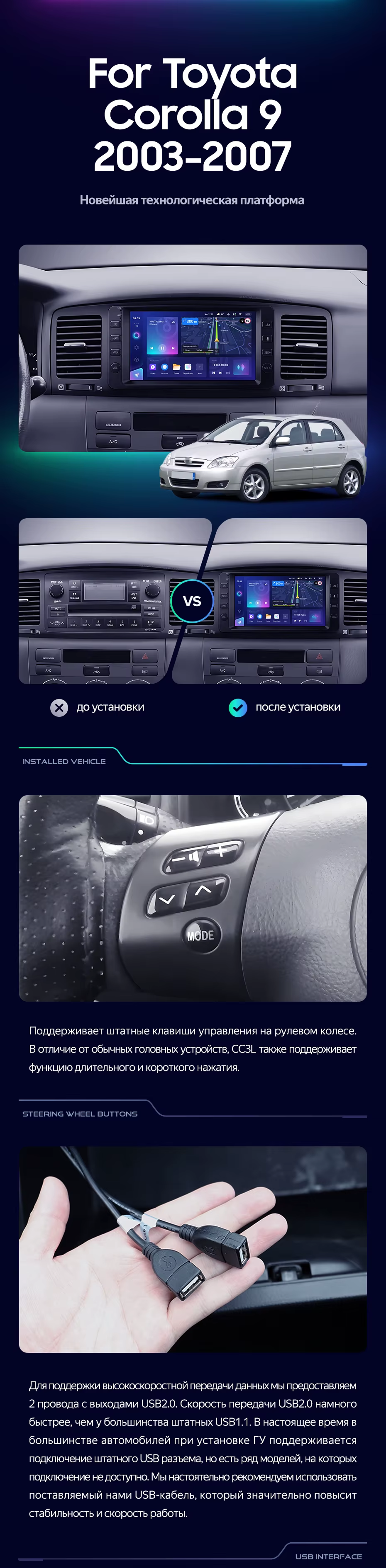 Штатная магнитола Teyes CC3 4/32 Toyota Corolla 9 E120 E130 (2003-2007) 7" - купить всего за 32 500 руб. в интернет-магазине в Петрозаводске Teyes.com.ru. ✓ Самый лучший выбор мультимедиа ✓ Лучшая замена штатному ГУ ✓ Тел. +7 (800) 775-31-74