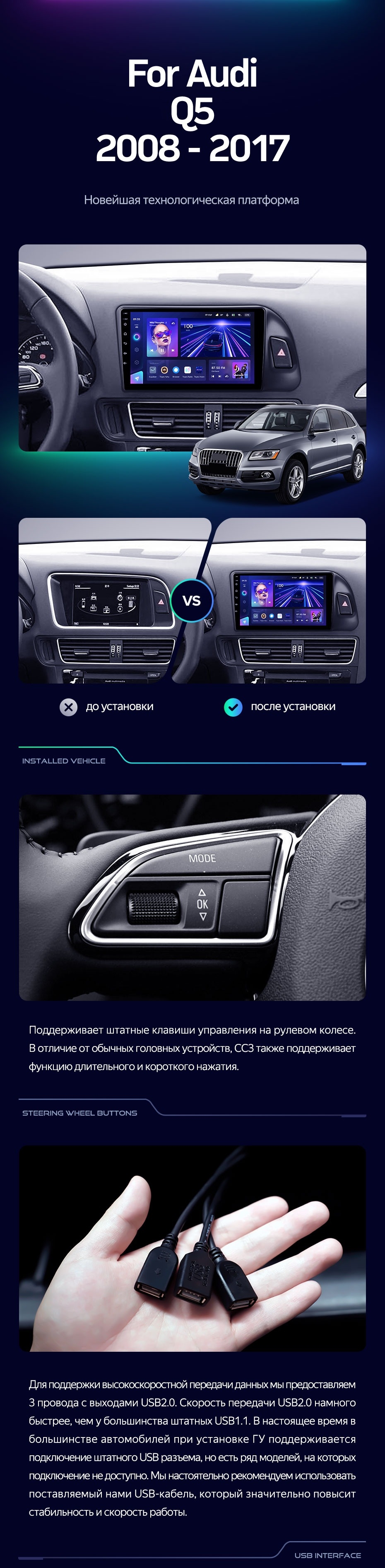 Штатная магнитола Teyes CC3L 4/32 Audi Q5 8R (2008-2017) Тип-A - купить всего за 31 540 руб. в интернет-магазине в Петрозаводске Teyes.com.ru. ✓ Самый лучший выбор мультимедиа ✓ Лучшая замена штатному ГУ ✓ Тел. +7 (800) 775-31-74