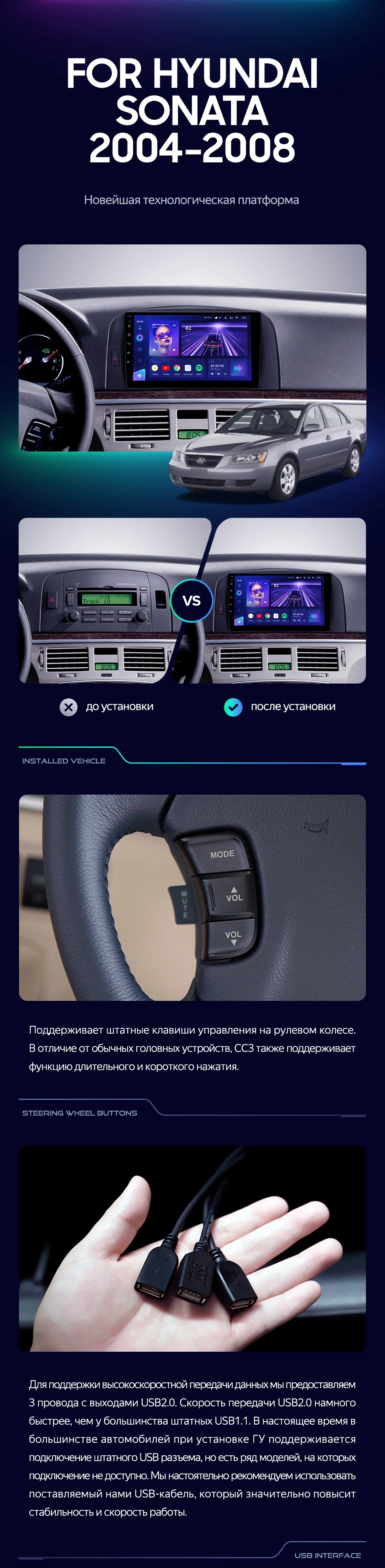Штатная магнитола Teyes CC3L 4/32 Hyundai Sonata NF (2004-2008) - купить всего за 28 200 руб. в интернет-магазине в Петрозаводске Teyes.com.ru. ✓ Самый лучший выбор мультимедиа ✓ Лучшая замена штатному ГУ ✓ Тел. +7 (800) 775-31-74