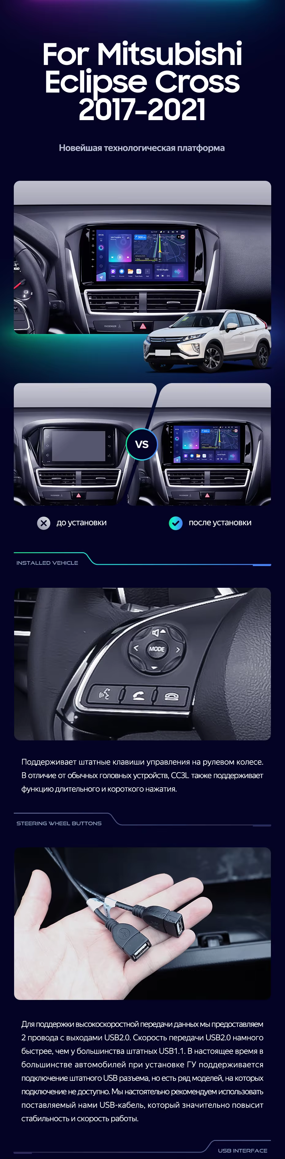 Штатная магнитола Teyes CC3L 4/32 Mitsubishi Eclipse Cross 1 (2017-2021) F1 - купить всего за 29 140 руб. в интернет-магазине в Петрозаводске Teyes.com.ru. ✓ Самый лучший выбор мультимедиа ✓ Лучшая замена штатному ГУ ✓ Тел. +7 (800) 775-31-74