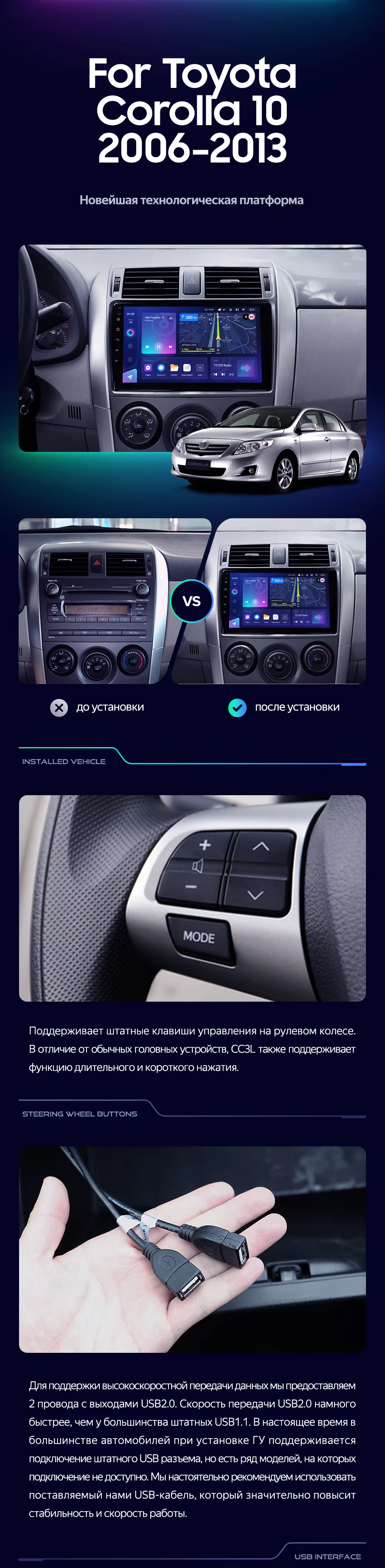 Штатная магнитола Teyes CC3L 4/32 Toyota Corolla 10 E140 E150 (2006-2013) Тип-B - купить всего за 27 790 руб. в интернет-магазине в Петрозаводске Teyes.com.ru. ✓ Самый лучший выбор мультимедиа ✓ Лучшая замена штатному ГУ ✓ Тел. +7 (800) 775-31-74