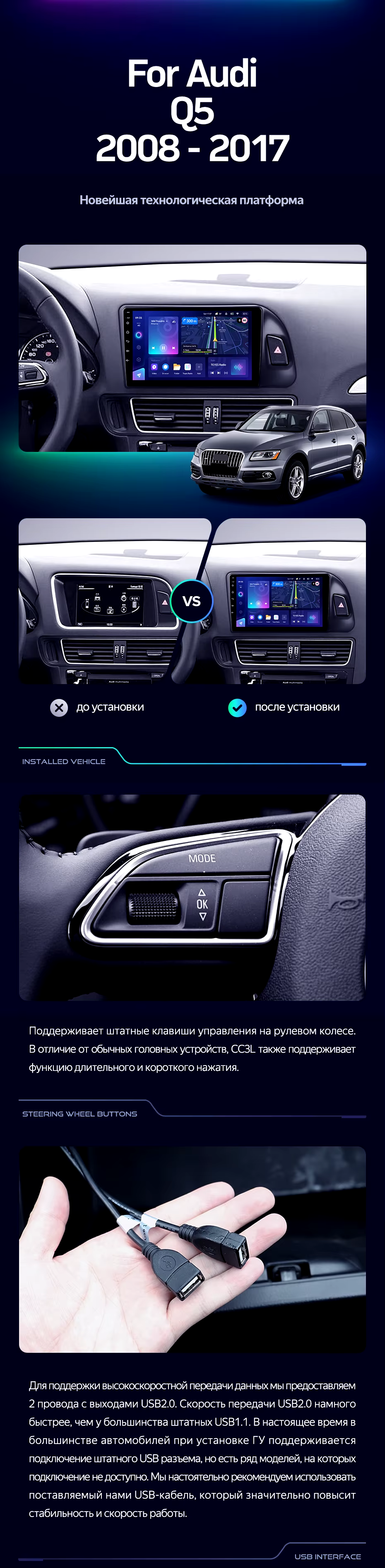Штатная магнитола Teyes CC3L 4/64 Audi Q5 8R (2008-2017) Тип-B - купить всего за 35 400 руб. в интернет-магазине в Петрозаводске Teyes.com.ru. ✓ Самый лучший выбор мультимедиа ✓ Лучшая замена штатному ГУ ✓ Тел. +7 (800) 775-31-74
