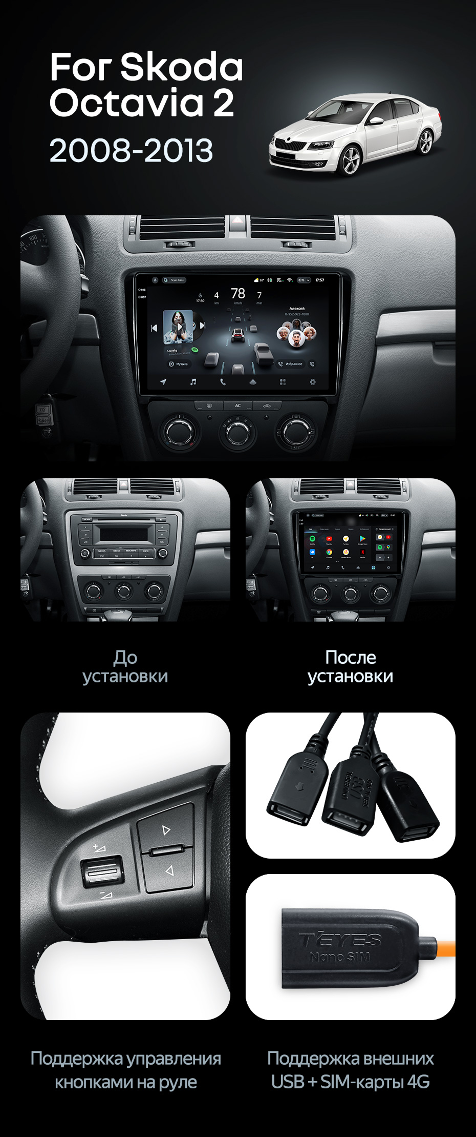 Штатная магнитола Teyes CC4 6/64 Skoda Octavia 2 A5 (2008-2013) - купить всего за 48 030 руб. в интернет-магазине в Петрозаводске Teyes.com.ru. ✓ Самый лучший выбор мультимедиа ✓ Лучшая замена штатному ГУ ✓ Тел. +7 (800) 775-31-74