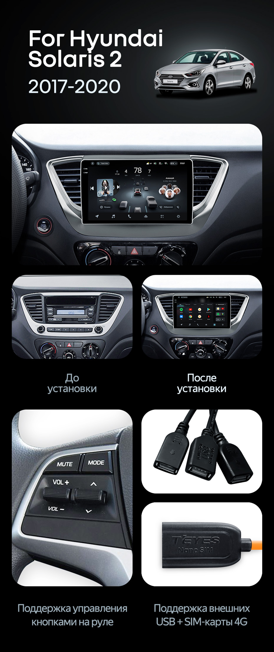 Штатная магнитола Teyes CC4 Pro 12/256 Hyundai Solaris 2 (2017-2020) F1 Тип-A - купить всего за 69 270 руб. в интернет-магазине в Петрозаводске Teyes.com.ru. ✓ Самый лучший выбор мультимедиа ✓ Лучшая замена штатному ГУ ✓ Тел. +7 (800) 775-31-74