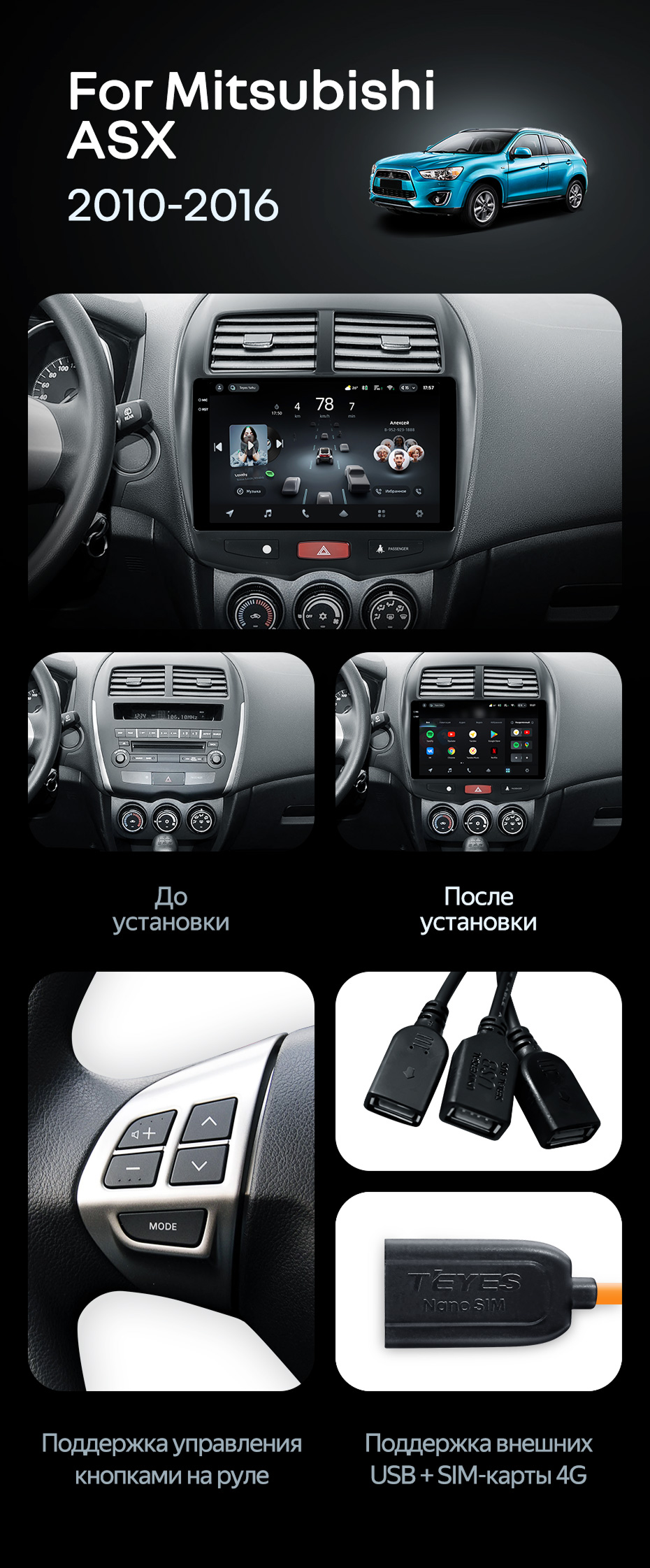 Штатная магнитола Teyes CC4 Pro 12/256 Mitsubishi ASX 1 (2010-2016) Тип-B - купить всего за 69 740 руб. в интернет-магазине в Петрозаводске Teyes.com.ru. ✓ Самый лучший выбор мультимедиа ✓ Лучшая замена штатному ГУ ✓ Тел. +7 (800) 775-31-74