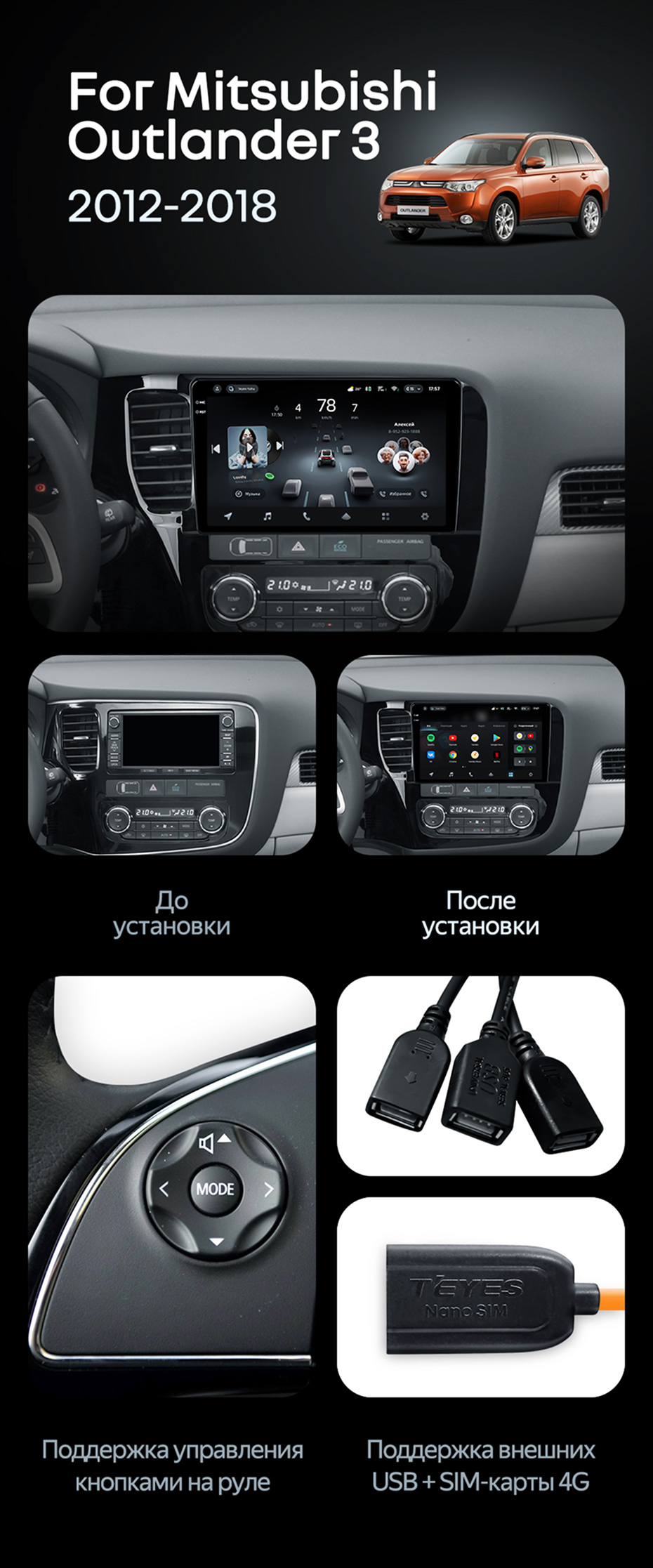 Штатная магнитола Teyes CC4 Pro 12/256 Mitsubishi Outlander 3 (2012-2018) Тип-B - купить всего за 69 540 руб. в интернет-магазине в Петрозаводске Teyes.com.ru. ✓ Самый лучший выбор мультимедиа ✓ Лучшая замена штатному ГУ ✓ Тел. +7 (800) 775-31-74