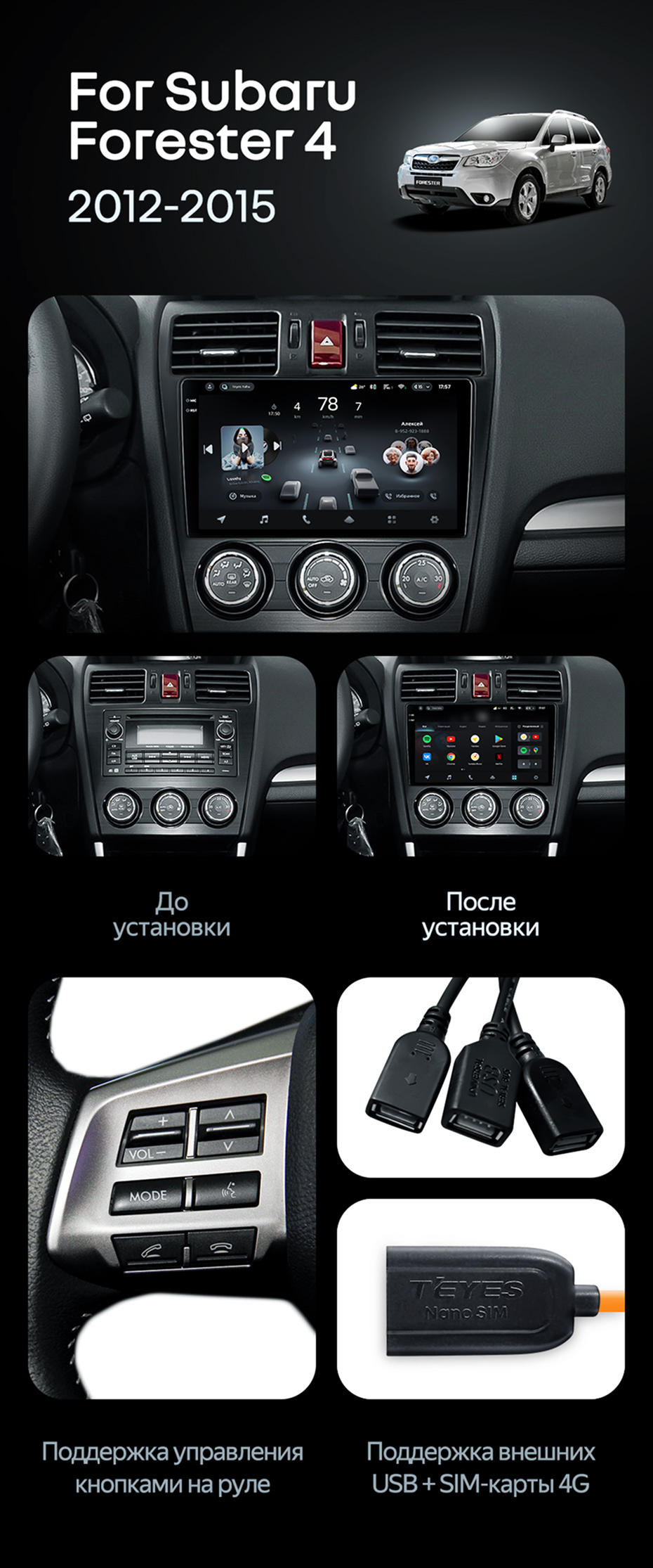 Штатная магнитола Teyes CC4 Pro 12/256 Subaru Forester 4 SJ (2012-2015) Тип-A - купить всего за 69 390 руб. в интернет-магазине в Петрозаводске Teyes.com.ru. ✓ Самый лучший выбор мультимедиа ✓ Лучшая замена штатному ГУ ✓ Тел. +7 (800) 775-31-74