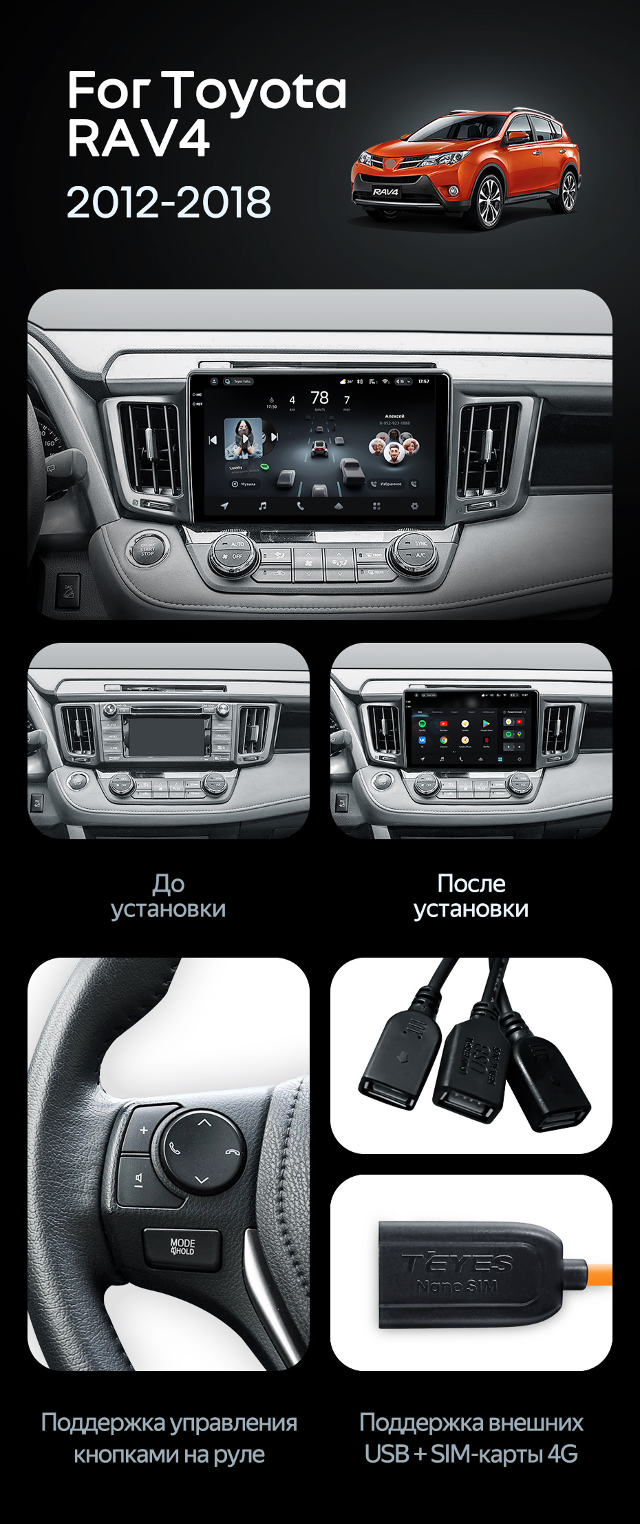 Штатная магнитола Teyes CC4 Pro 12/256 Toyota RAV4 (2012-2018) - купить всего за 69 700 руб. в интернет-магазине в Петрозаводске Teyes.com.ru. ✓ Самый лучший выбор мультимедиа ✓ Лучшая замена штатному ГУ ✓ Тел. +7 (800) 775-31-74