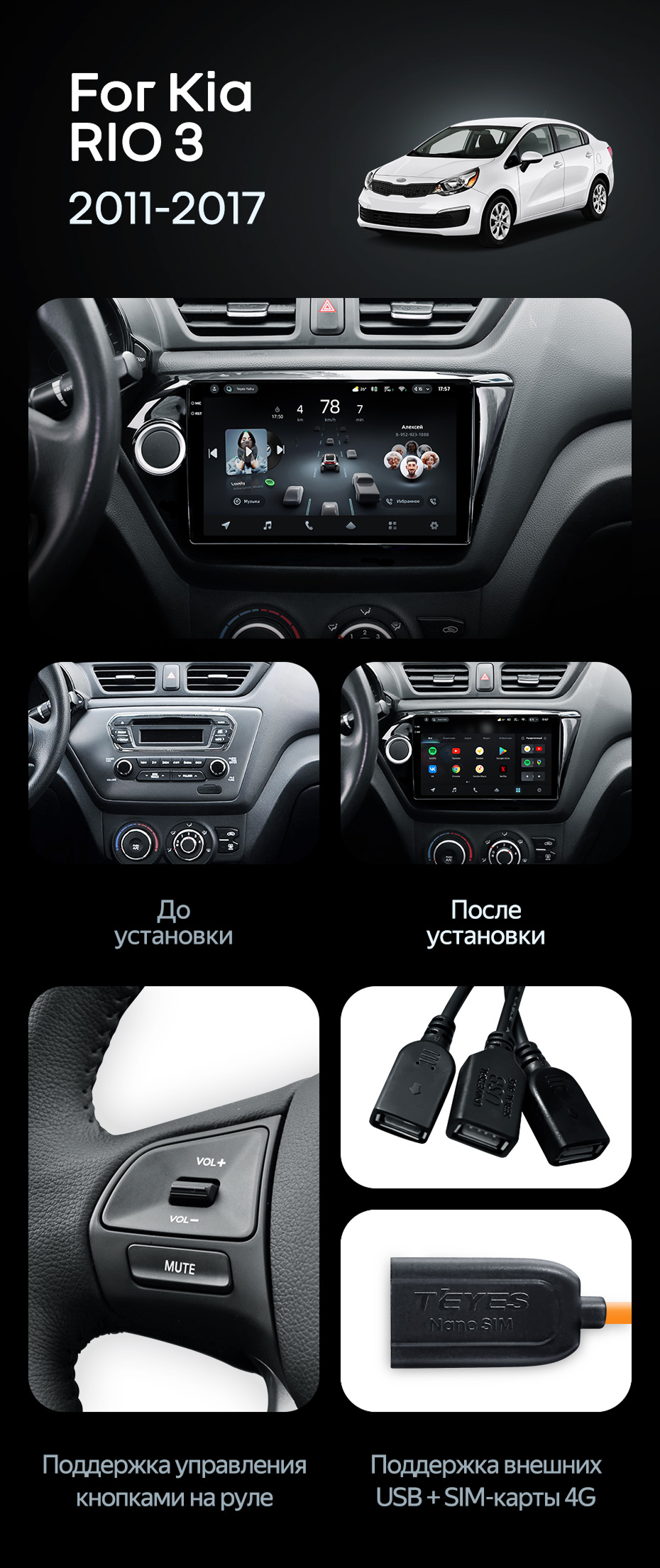 Штатная магнитола Teyes CC4 Pro 8/128 Kia Rio 3 (2011-2017) - купить всего за 57 760 руб. в интернет-магазине в Петрозаводске Teyes.com.ru. ✓ Самый лучший выбор мультимедиа ✓ Лучшая замена штатному ГУ ✓ Тел. +7 (800) 775-31-74