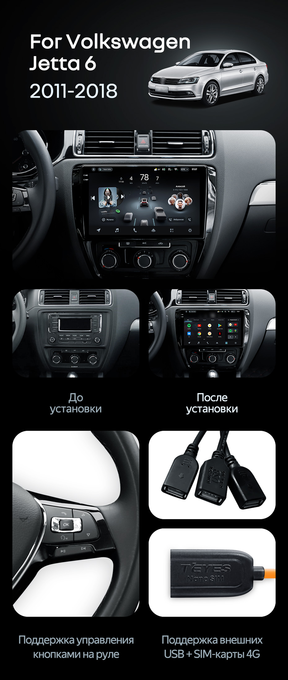 Штатная магнитола Teyes CC4 Pro 8/128 Volkswagen Jetta 6 (2011-2018) - купить всего за 58 330 руб. в интернет-магазине в Петрозаводске Teyes.com.ru. ✓ Самый лучший выбор мультимедиа ✓ Лучшая замена штатному ГУ ✓ Тел. +7 (800) 775-31-74