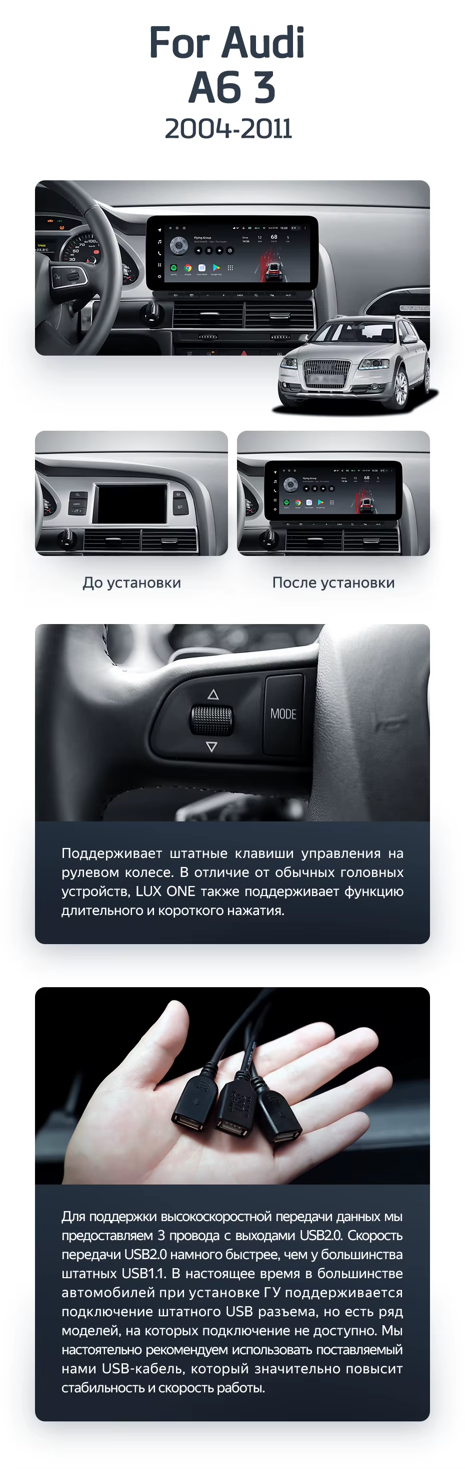 Штатная магнитола Teyes LUX ONE 4/64 Audi A6 3 C6 (2004-2011) - купить всего за 43 400 руб. в интернет-магазине в Петрозаводске Teyes.com.ru. ✓ Самый лучший выбор мультимедиа ✓ Лучшая замена штатному ГУ ✓ Тел. +7 (800) 775-31-74