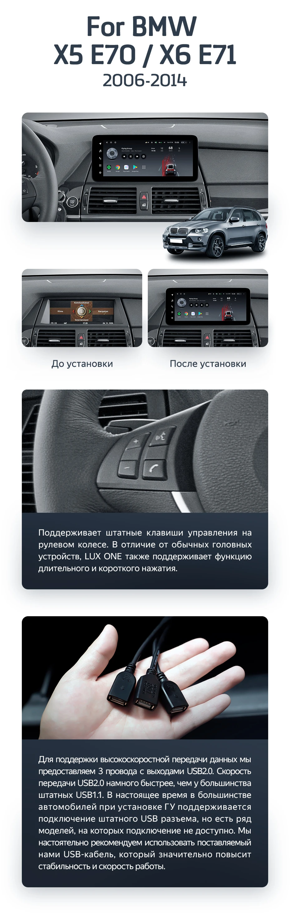 Штатная магнитола Teyes LUX ONE 4/64 BMW X6 E71 (CIC) (2006-2014) Universal - купить всего за 44 100 руб. в интернет-магазине в Петрозаводске Teyes.com.ru. ✓ Самый лучший выбор мультимедиа ✓ Лучшая замена штатному ГУ ✓ Тел. +7 (800) 775-31-74