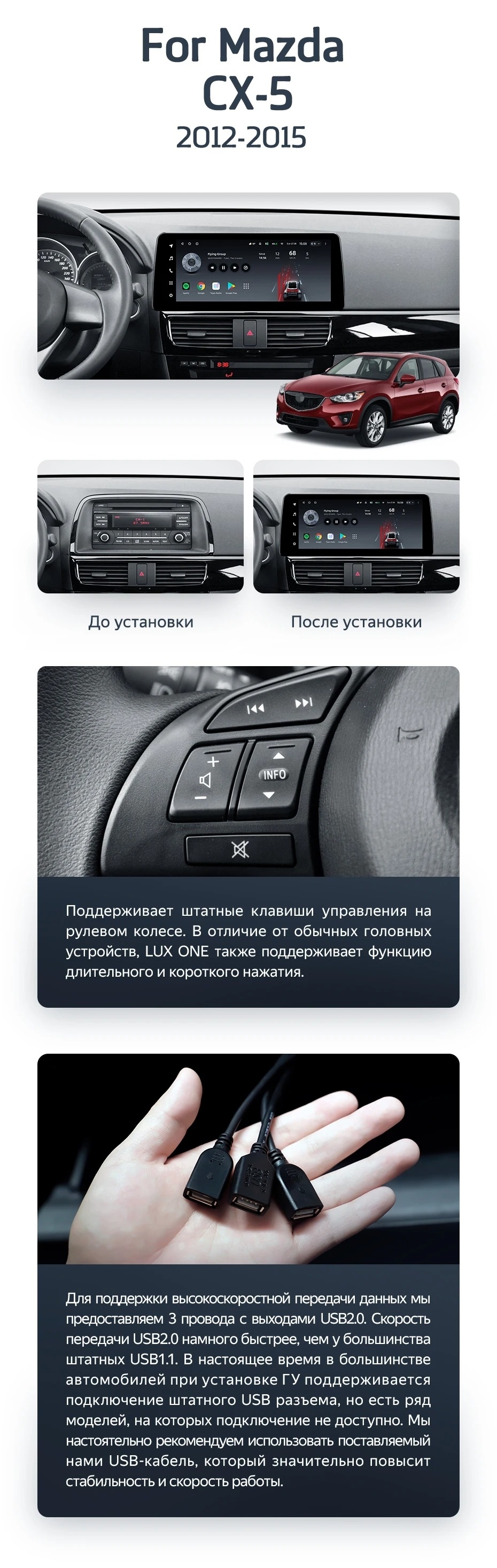 Штатная магнитола Teyes LUX ONE 4/64 Mazda CX-5 (2012-2015) Тип-C - купить всего за 42 300 руб. в интернет-магазине в Петрозаводске Teyes.com.ru. ✓ Самый лучший выбор мультимедиа ✓ Лучшая замена штатному ГУ ✓ Тел. +7 (800) 775-31-74