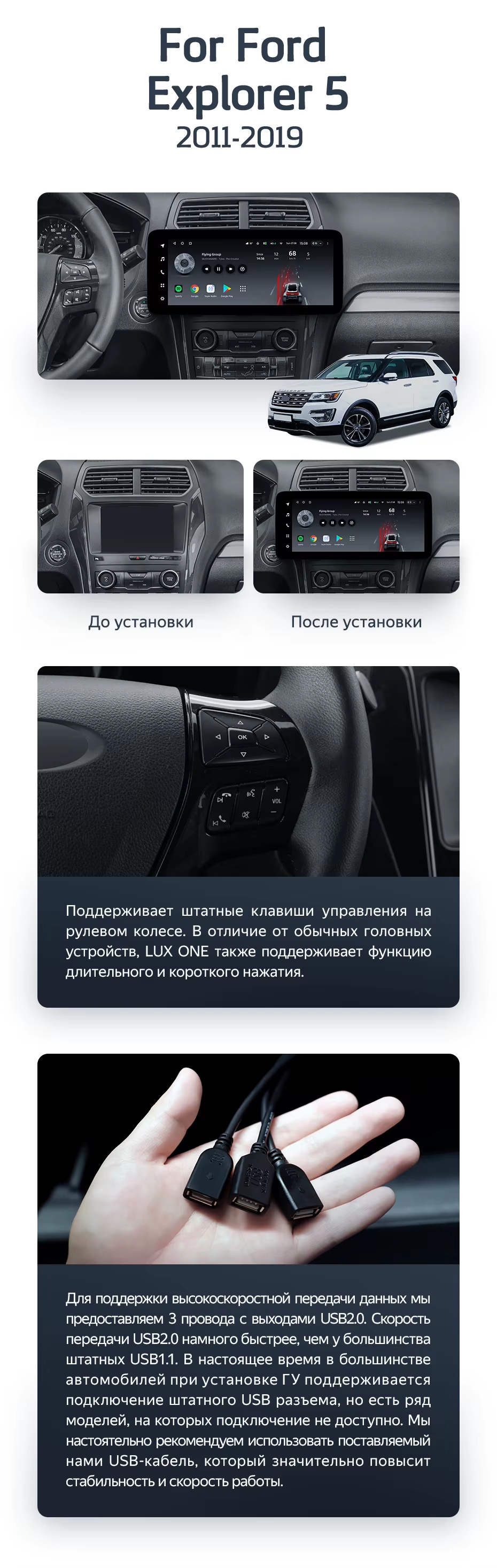 Штатная магнитола Teyes LUX ONE 6/128 Ford Explorer 5 (2011-2019) - купить всего за 53 600 руб. в интернет-магазине в Петрозаводске Teyes.com.ru. ✓ Самый лучший выбор мультимедиа ✓ Лучшая замена штатному ГУ ✓ Тел. +7 (800) 775-31-74